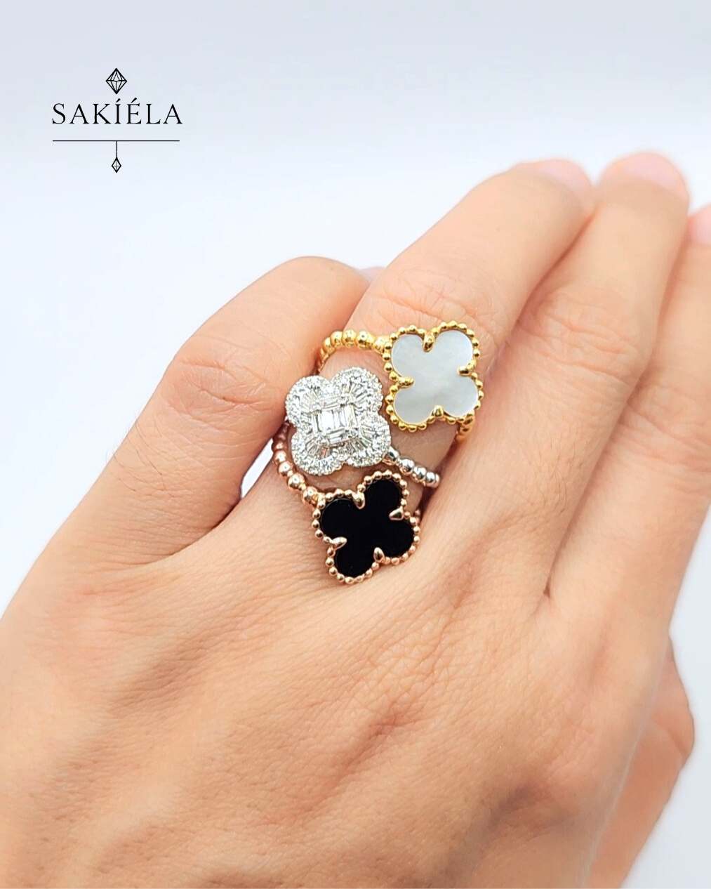 Your style, your sparkle. Choose your favorite clover motif and make every moment shine. 🌸✨✔️ .14cts Natural Diamonds✔️ Clarity: VVS1 | Color: H✔️ Weight: 5.9 grams | Size: 6½✔️ 14 Karat Gold
