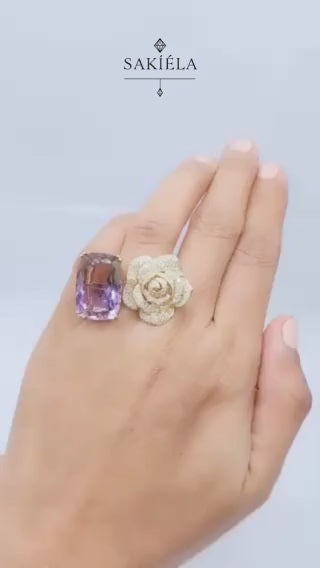 Bold as a rose, radiant as royalty. 💜🌹✨✔️ 1.295cts Natural Diamonds✔️ 18.146cts Amethyst✔️ VVS1 Clarity | H Color✔️ 14k Yellow Gold (11.56g)✔️ Ring Size: 6.5