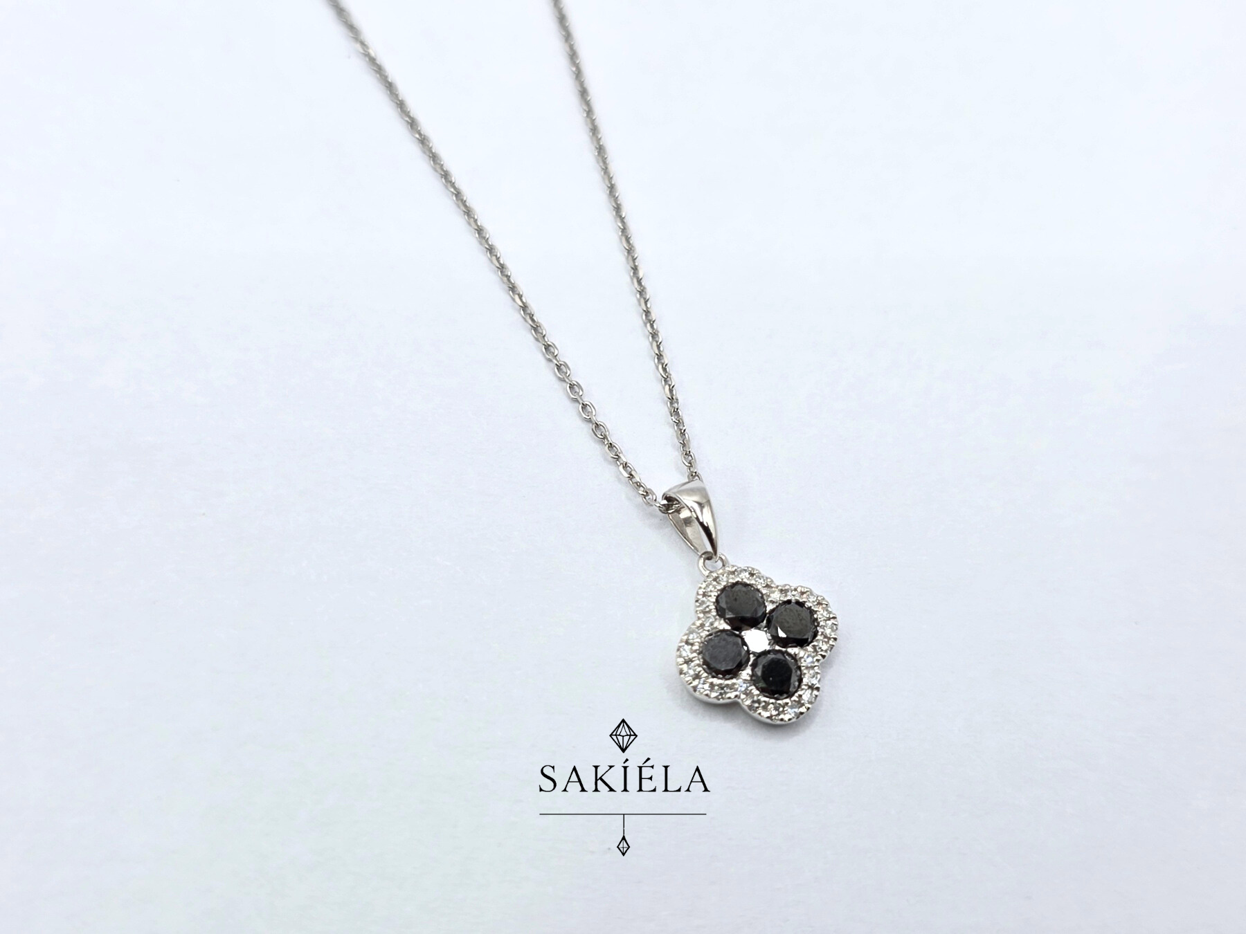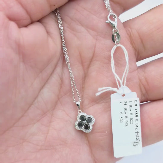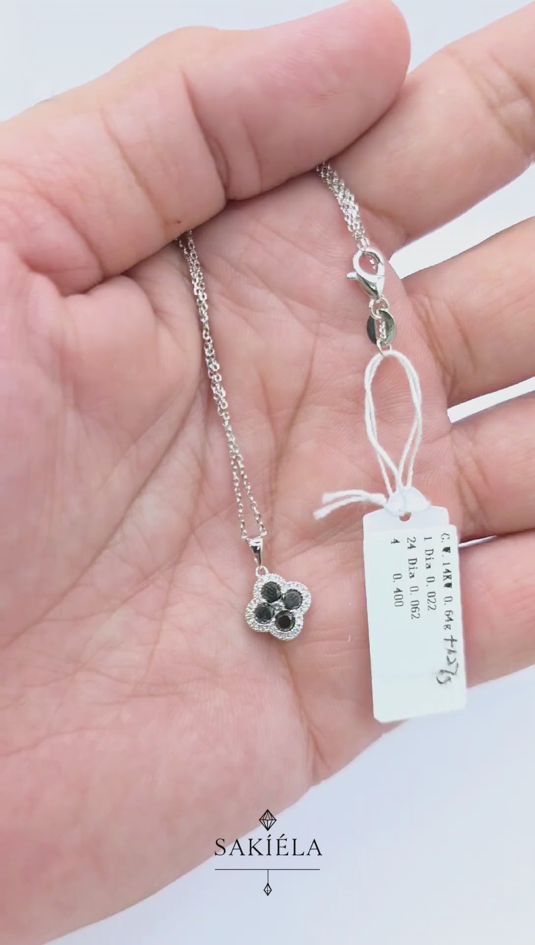 Dark elegance, lucky sparkle 🍀🖤💎✨✔️ 0.084cts Natural Diamonds✔️ 0.400cts Black Diamonds✔️ VVS1 Clarity | H Color✔️ 14k White Gold (1.91g)✔️ Length: 16½"