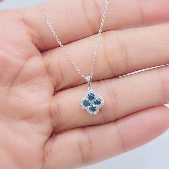 Luck meets luxury in a sparkle of blue and white 🍀💙💎✨✔️ 0.085cts Natural Diamonds✔️ 0.330cts Blue Diamonds✔️ VVS1 Clarity | H Color✔️ 14k White Gold (1.33g)✔️ Length: 16½"