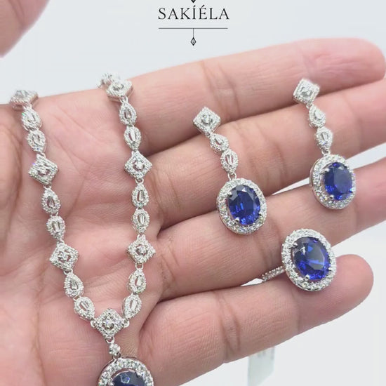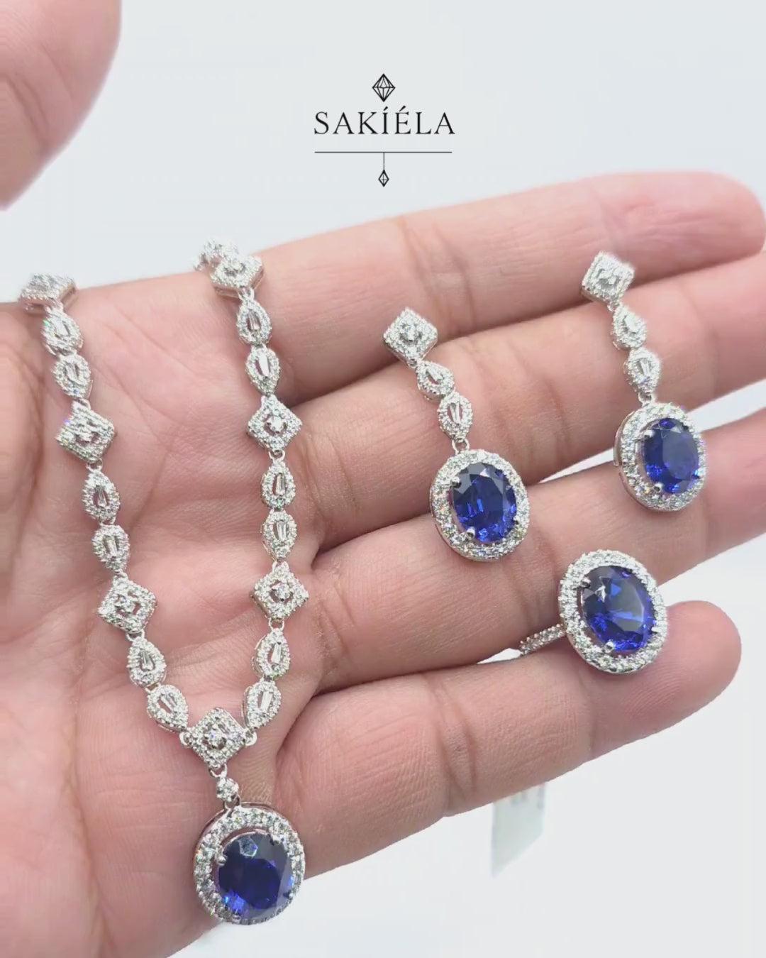Blue that speaks luxury. 💙✔️ 2.14cts Natural Diamonds | 10.51cts Nano Gemstones✔️ Clarity: VVS1 | Color: H✔️ 20.41 grams | Ring Size: 6½✔️ 16" Necklace✔️ 14 Karat White Gold