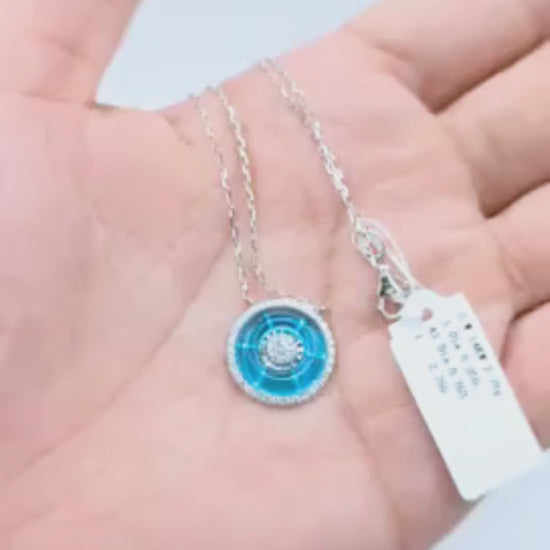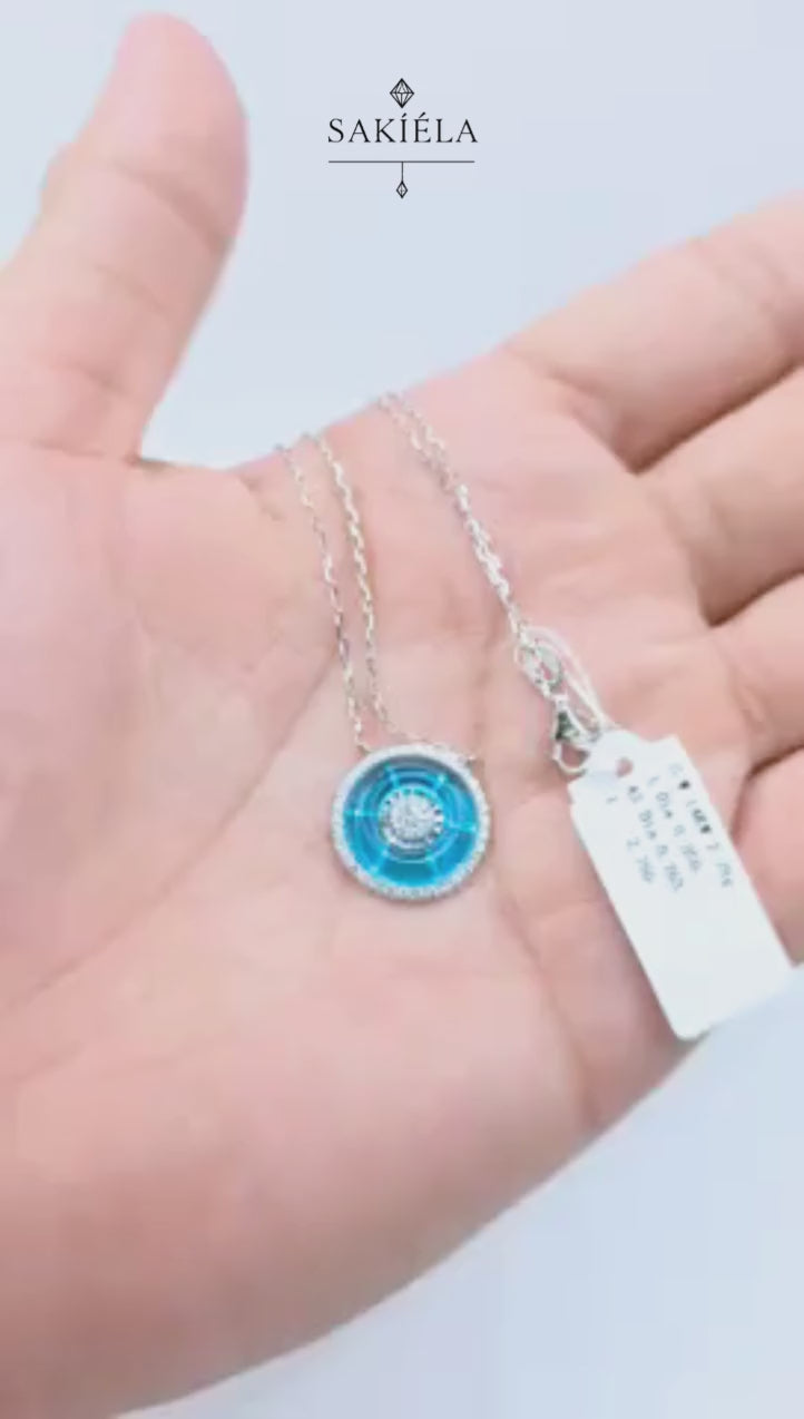 A halo of blue, framed in pure brilliance 💎💙✨✔️ .32cts Natural Diamonds✔️ VVS1 Clarity | H Color✔️ 2.78g | Length: 17½" Adjustable✔️ 14k White Gold Mounting