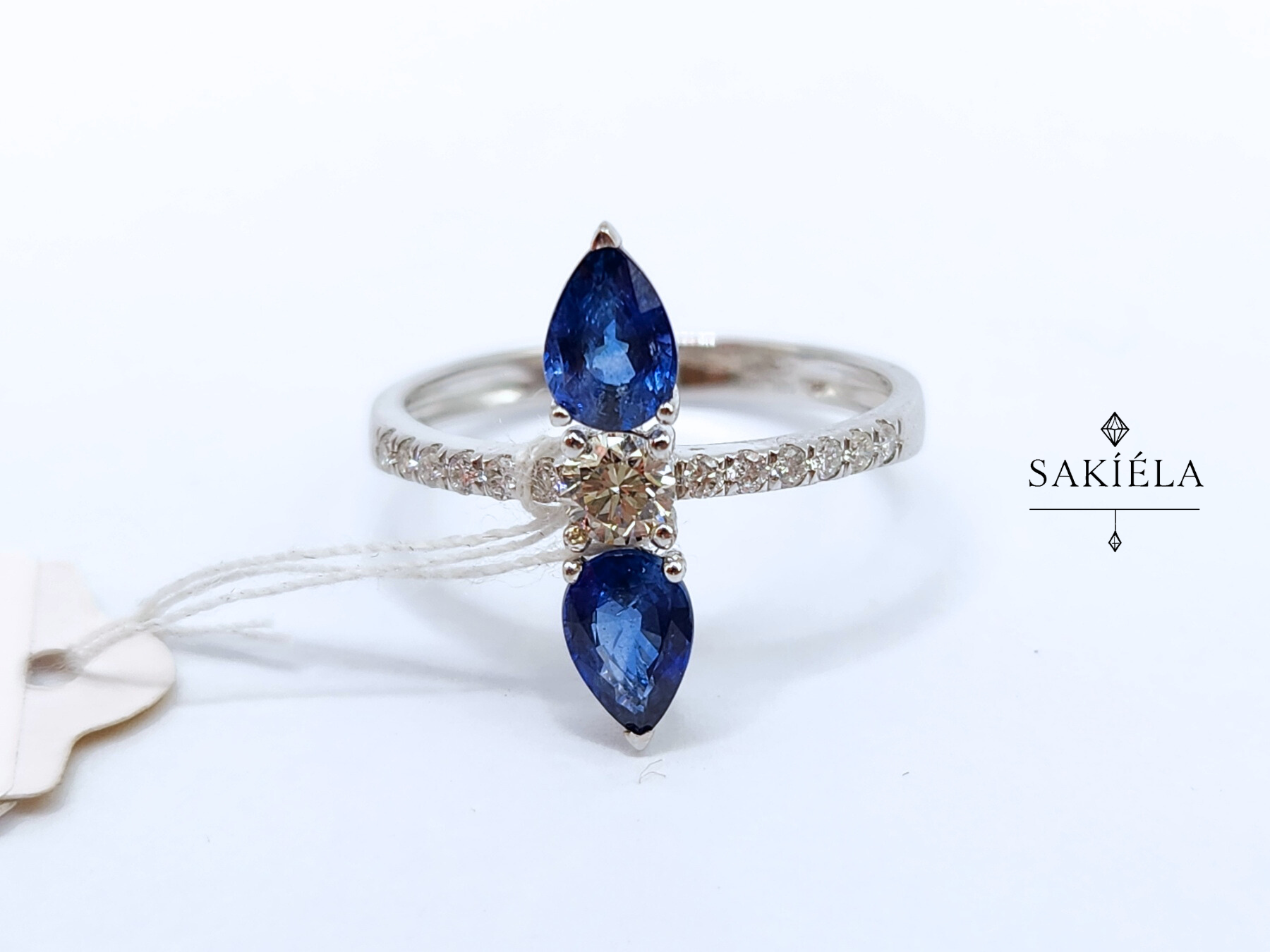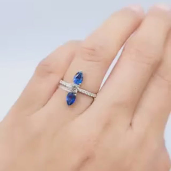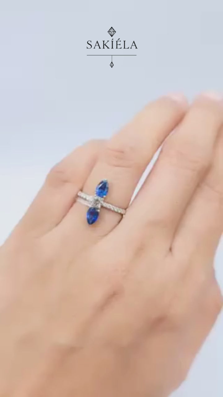 Two sapphires, one dazzling statement 💙💎✨✔️ .297cts Natural Diamonds / 1.150cts Blue Nano Gemstone✔️ VVS1 Clarity | H Color✔️ 1.89g | Ring Size: 6.25✔️ 14k White Gold Mounting