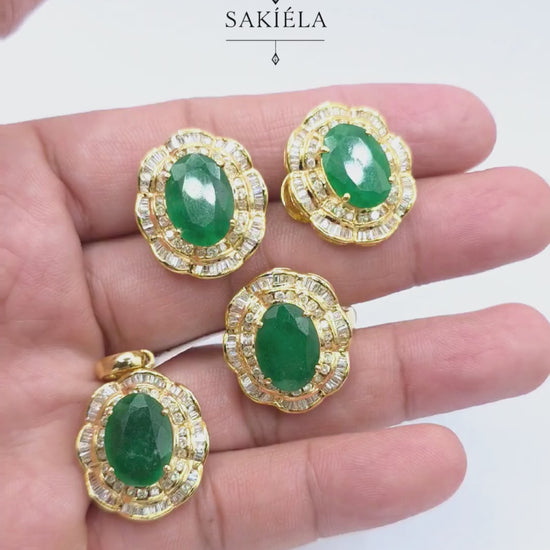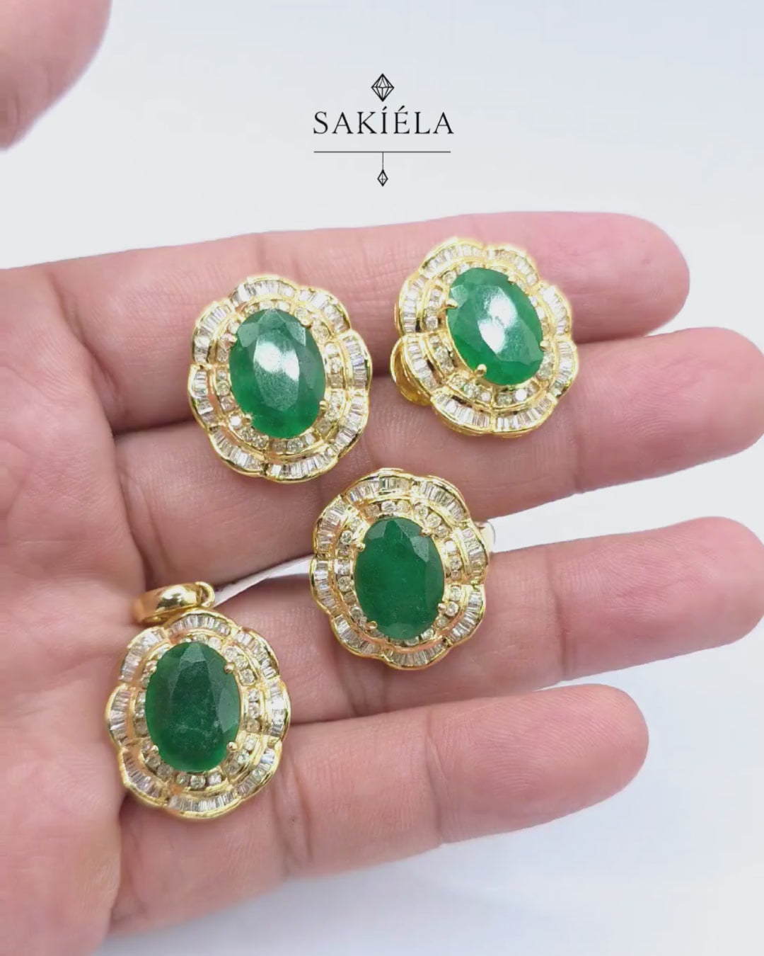 Green that captivates, gold that defines luxury. 💚✨✔️ 6cts Natural Diamonds | 20cts Emerald✔️ VVS1 Clarity | H Color✔️ 27.8 grams✔️ 14 Karat Yellow Gold Mounting