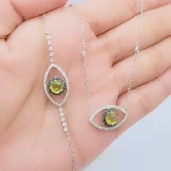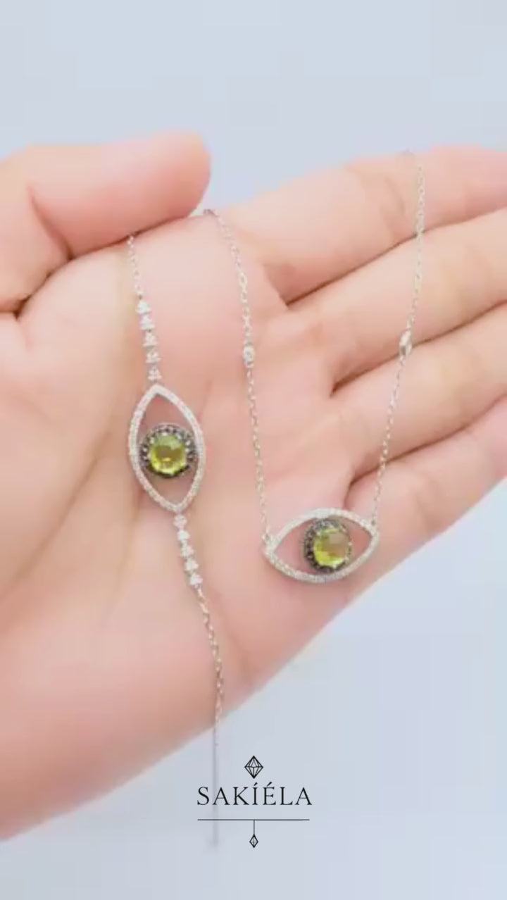 Diamond Evil Eye Necklace and Bracelet