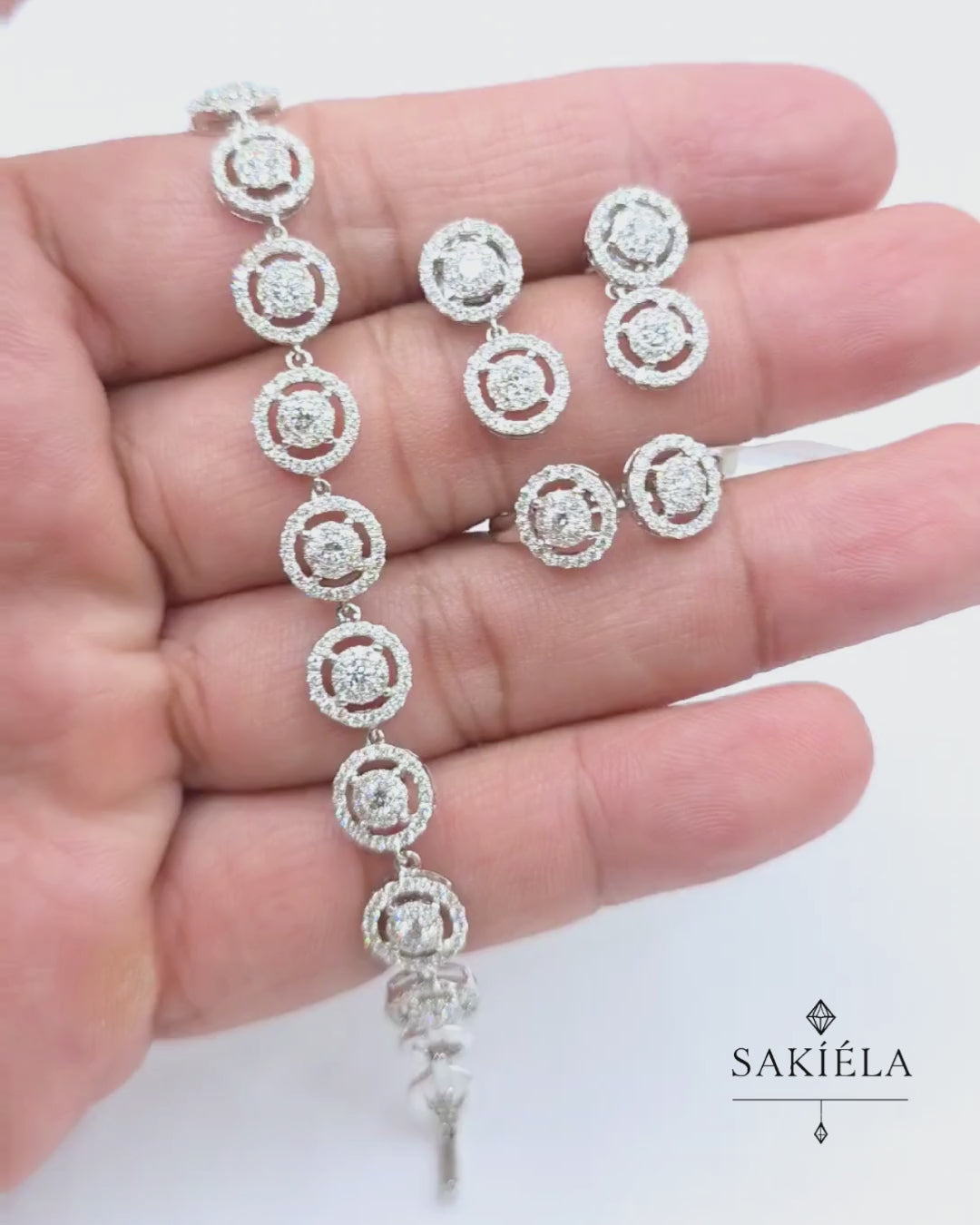 Pure brilliance in every curve. ✨ A timeless trio that redefines sophistication.✔️ 8cts Natural Diamonds✔️ VVS1 Clarity | I Color✔️ 17.3 grams | 7" Length✔️ 18 Karat Gold White Mounting