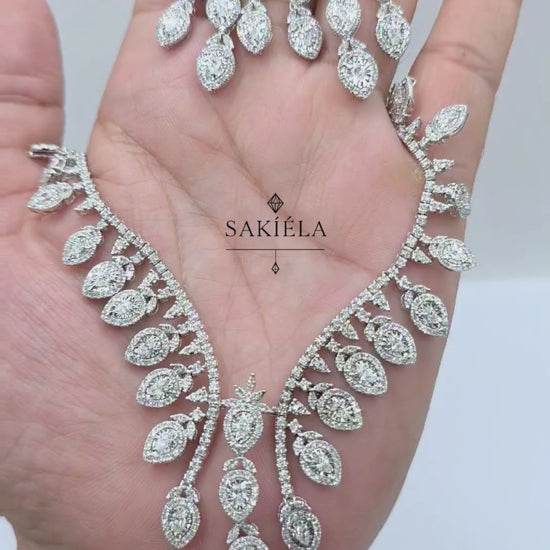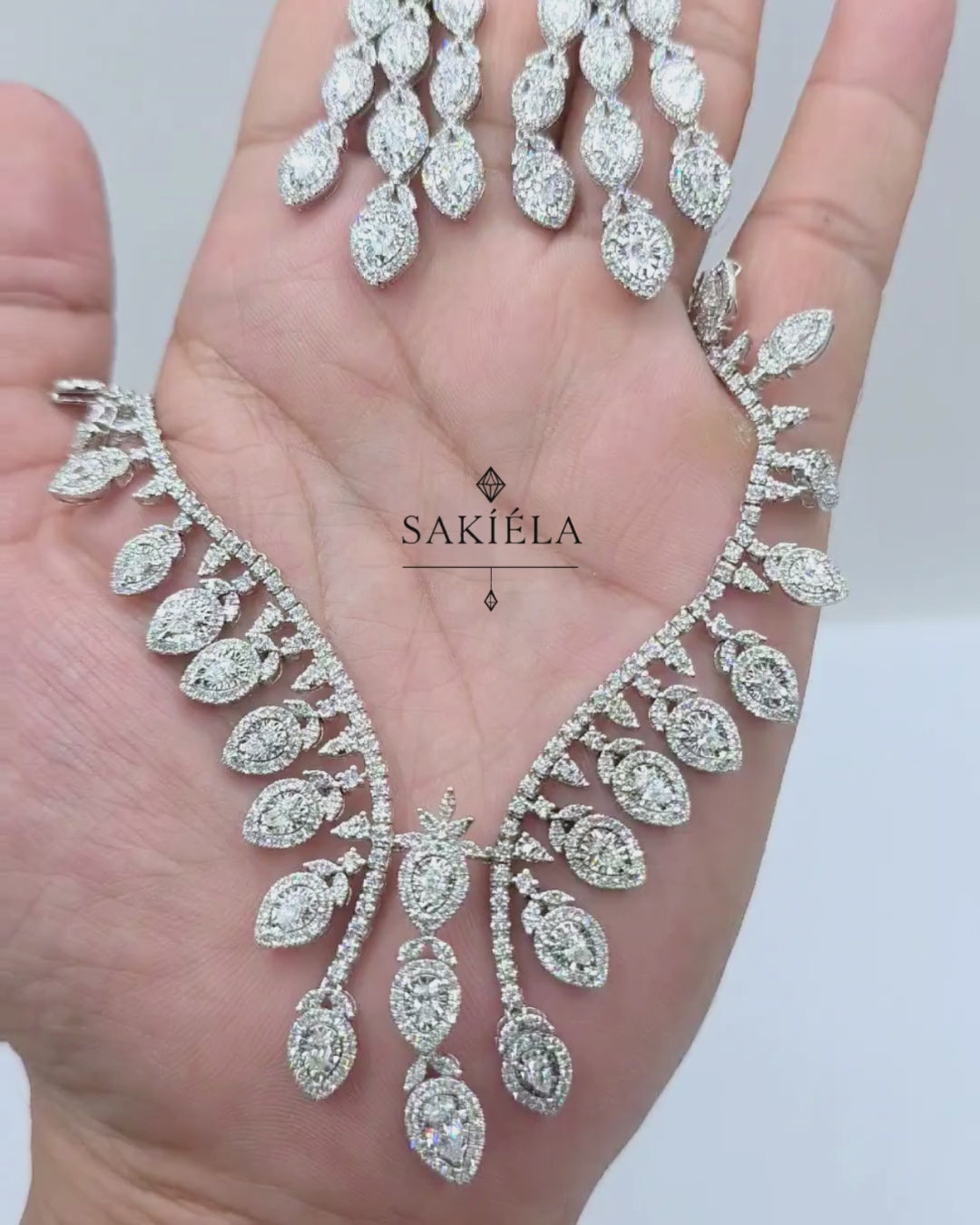 A masterpiece made to turn every glance into admiration. ✨💎✔️ Necklace: 4.87cts Diamonds | 30.24 grams✔️ Earrings: 2.58cts Diamonds | 14.22 grams✔️ Clarity: VVS1 | Color: H✔️ Size: 16"✔️ 14 Karat Gold