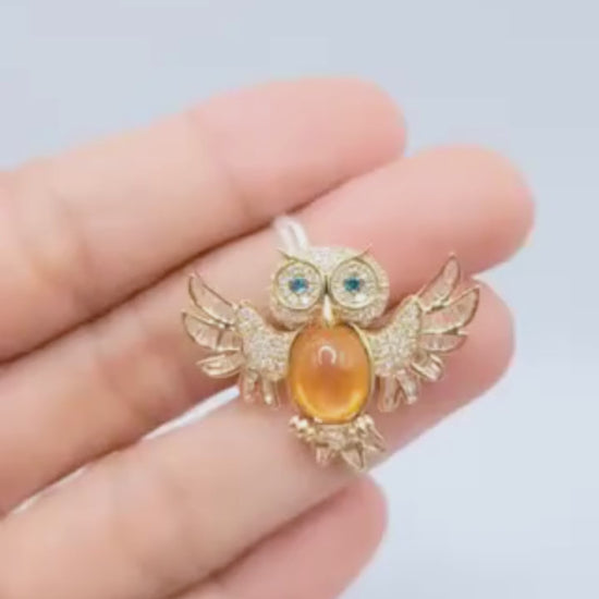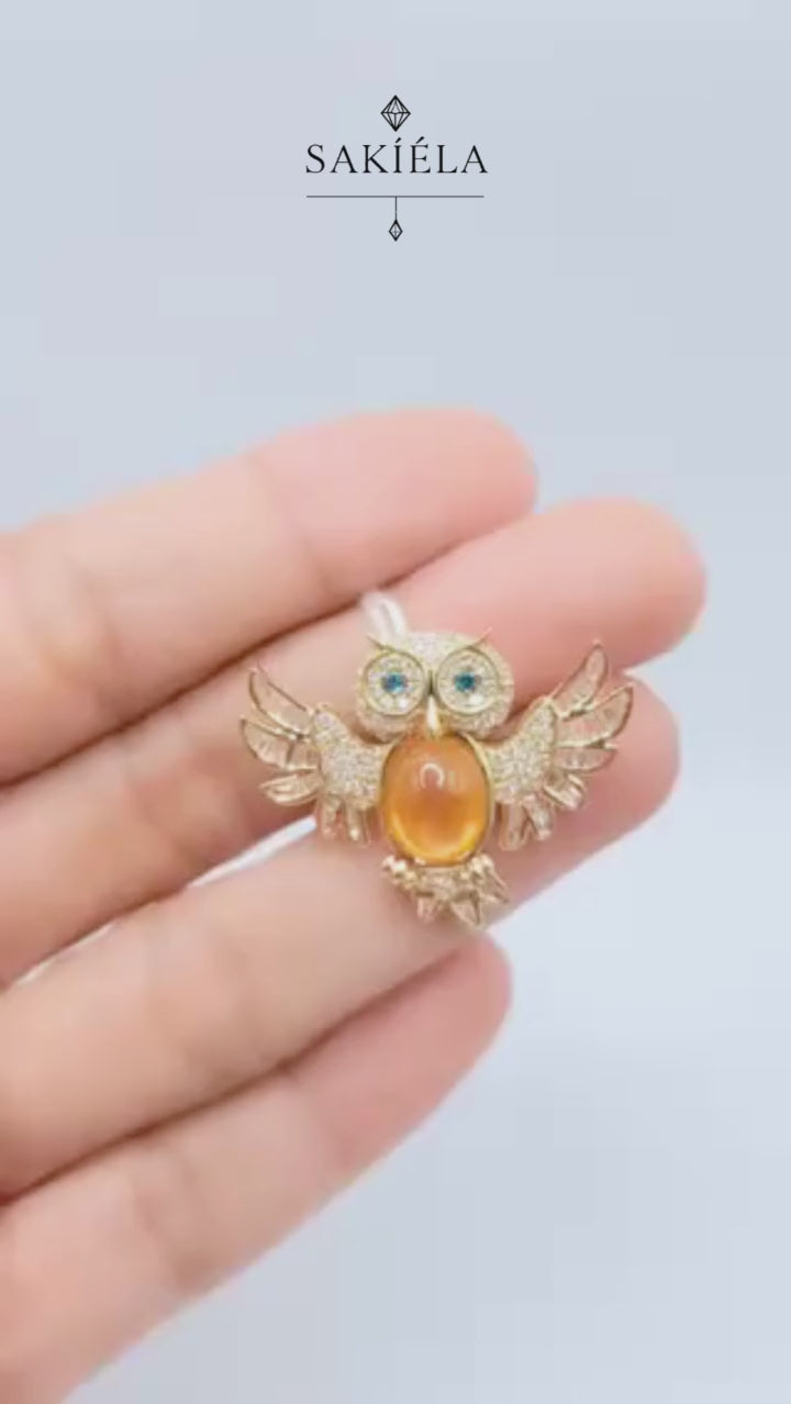 Owl but make it iced 🦉💛💎✨✔️ 0.73cts Natural Diamonds / 4.688cts Yellow & Blue Gemstone✔️ VVS1 Clarity | H Color✔️ 6.48g | 14k Yellow Gold Mounting