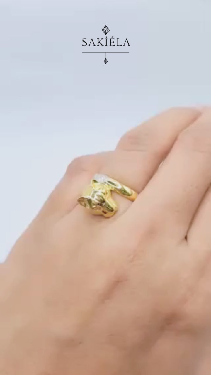 Golden grace, kissed with diamonds ✨💛💎✔️ 0.10cts Natural Diamonds✔️ VVS1 Clarity | H Color✔️ 18k Yellow Gold (6.1g)✔️ Ring Size: 7✔️ Panther design