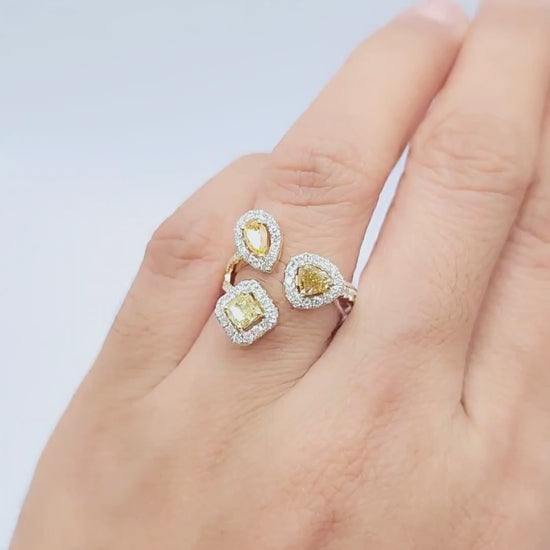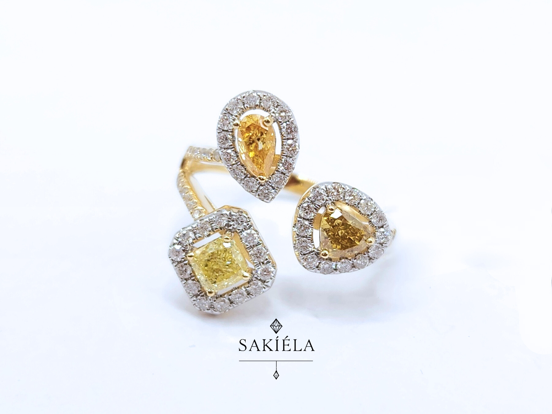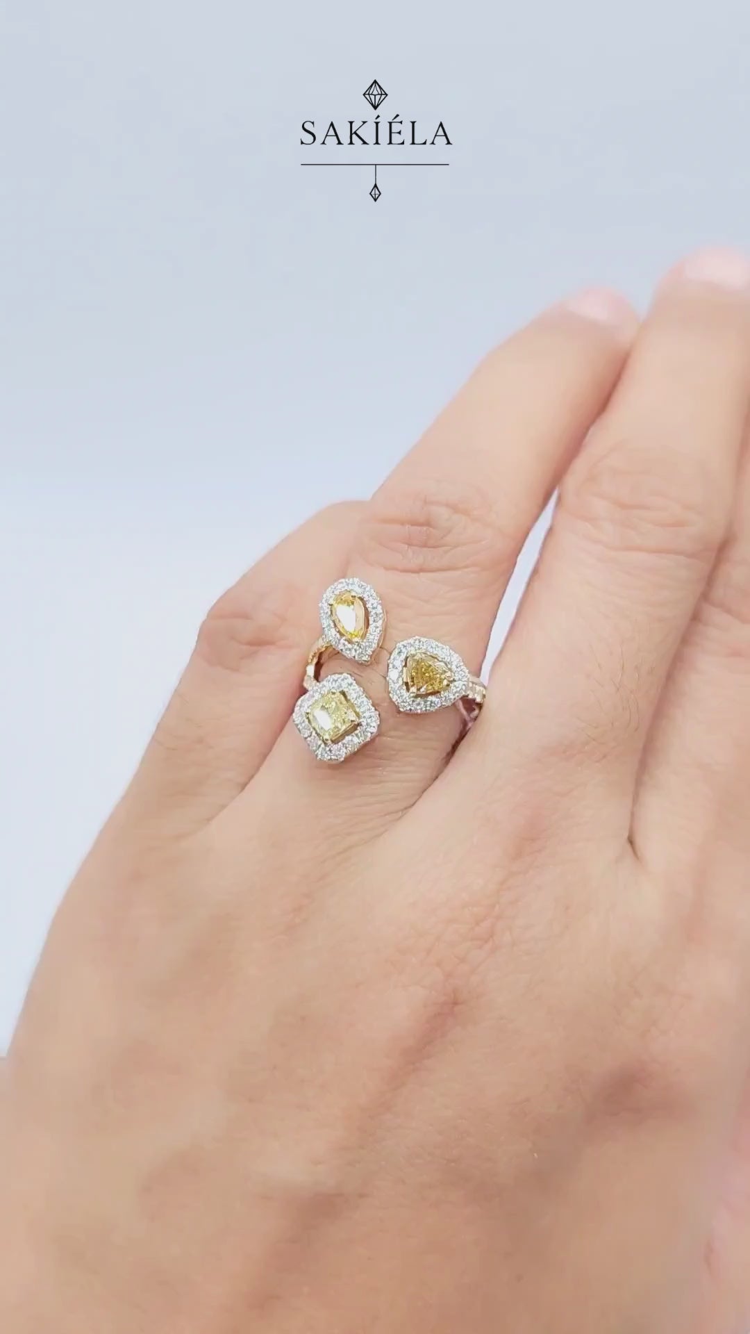 A golden glow framed in timeless sparkle 💛💎✨✔️ 1.332cts Natural Diamonds with Yellow Diamonds✔️ VVS1 Clarity | H / Fancy Yellow✔️ 2.96g | Ring Size: 6.5✔️ 14k Gold Mounting
