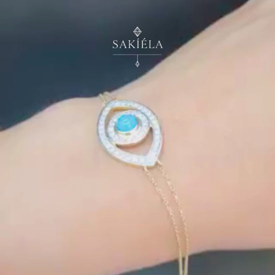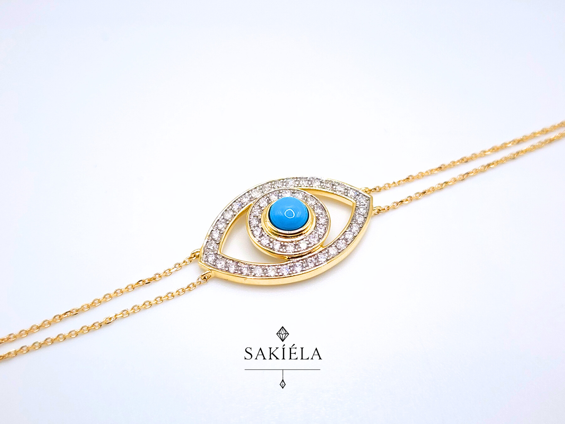 A touch of protection, wrapped in pure elegance. 👁✨✔️ 0.58cts Natural Diamonds✔️ VVS1 Clarity | H Color✔️ 3.7 grams✔️ Size: 7"✔️ 14 Karat Gold Mounting