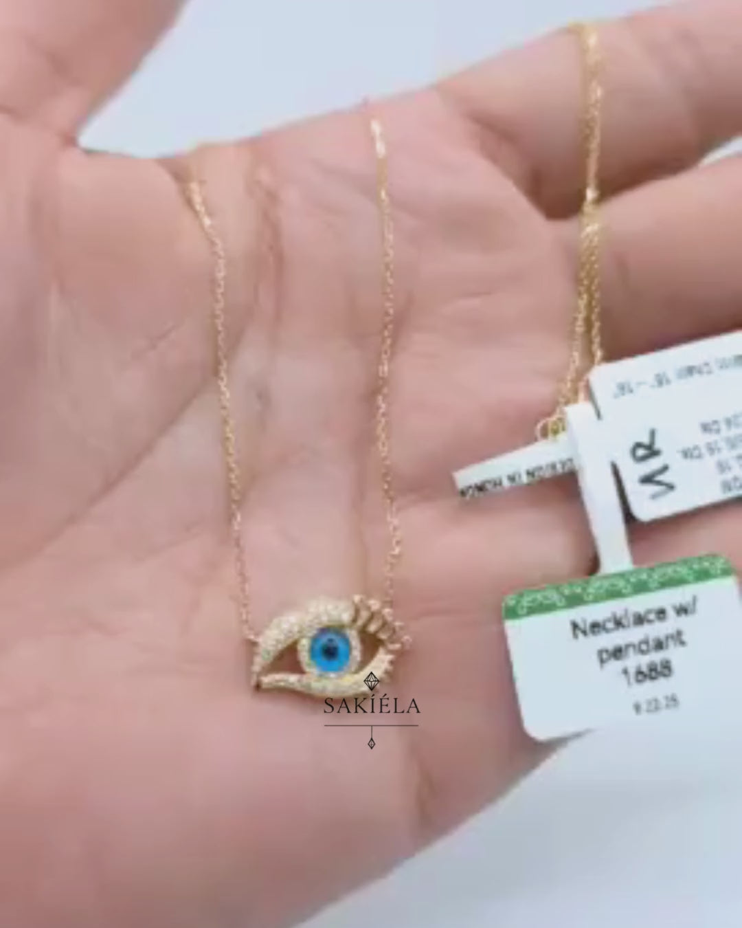 All eyes on you — and your protection in style. 👁💛✨✔️ 0.38cts Natural Diamonds | 0.24cts Tourmaline✔️ VVS1 Clarity | H Color✔️ 2.09 grams✔️ 18" Length✔️ 14 Karat Yellow Gold Mounting