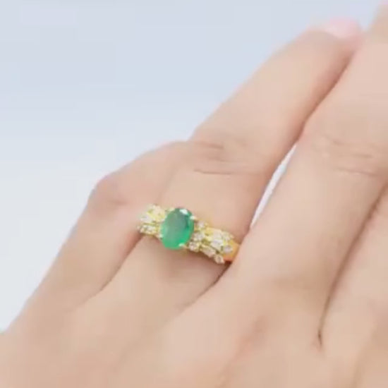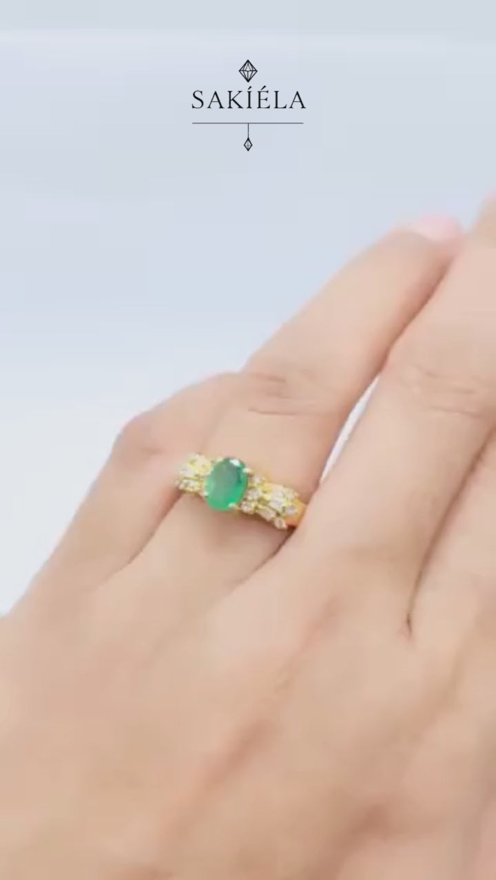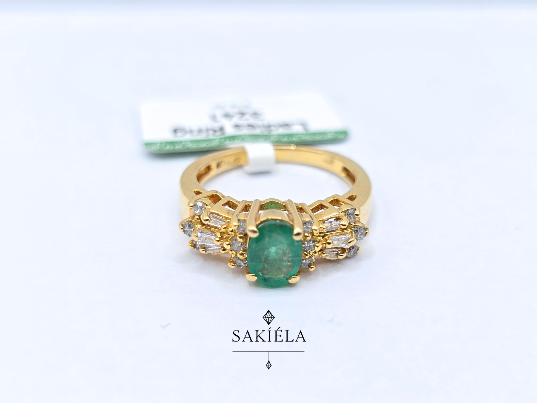 Golden glow, crowned with emerald elegance 💛💚✨✔️ 0.40cts Natural Diamonds✔️ 0.50ct Emerald✔️ VS1 Clarity | I Color✔️ 18k Yellow Gold (3.1g)✔️ Ring Size: 5¾