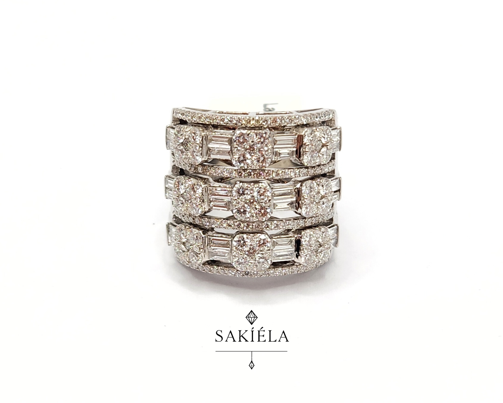 Bold elegance in every layer. ✨✔️ 2.91cts Natural Diamonds✔️ VVS2-SI Clarity | Color H✔️ 20.6 grams | Ring Size 7✔️ 18 Karat White Gold Mounting