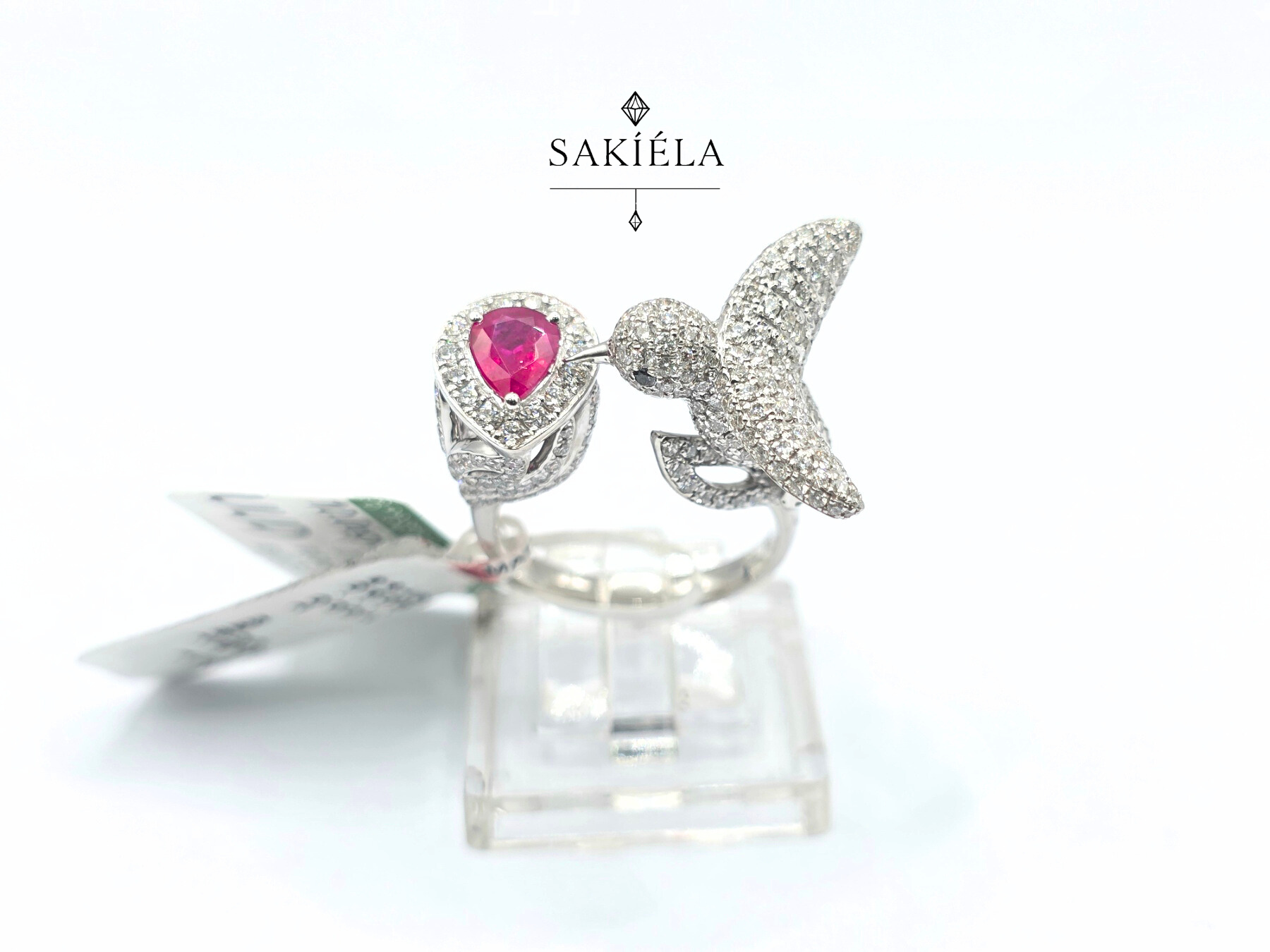 A touch of nature, a flight of sparkle. 🕊️✨✔️ 1.86cts Natural Diamonds | .64cts Ruby | .01ct Blue Sapphire✔️ VVS1 Clarity | F Color✔️ 10.06 grams✔️ Ring Size: 6½✔️ 18 Karat Gold Mounting