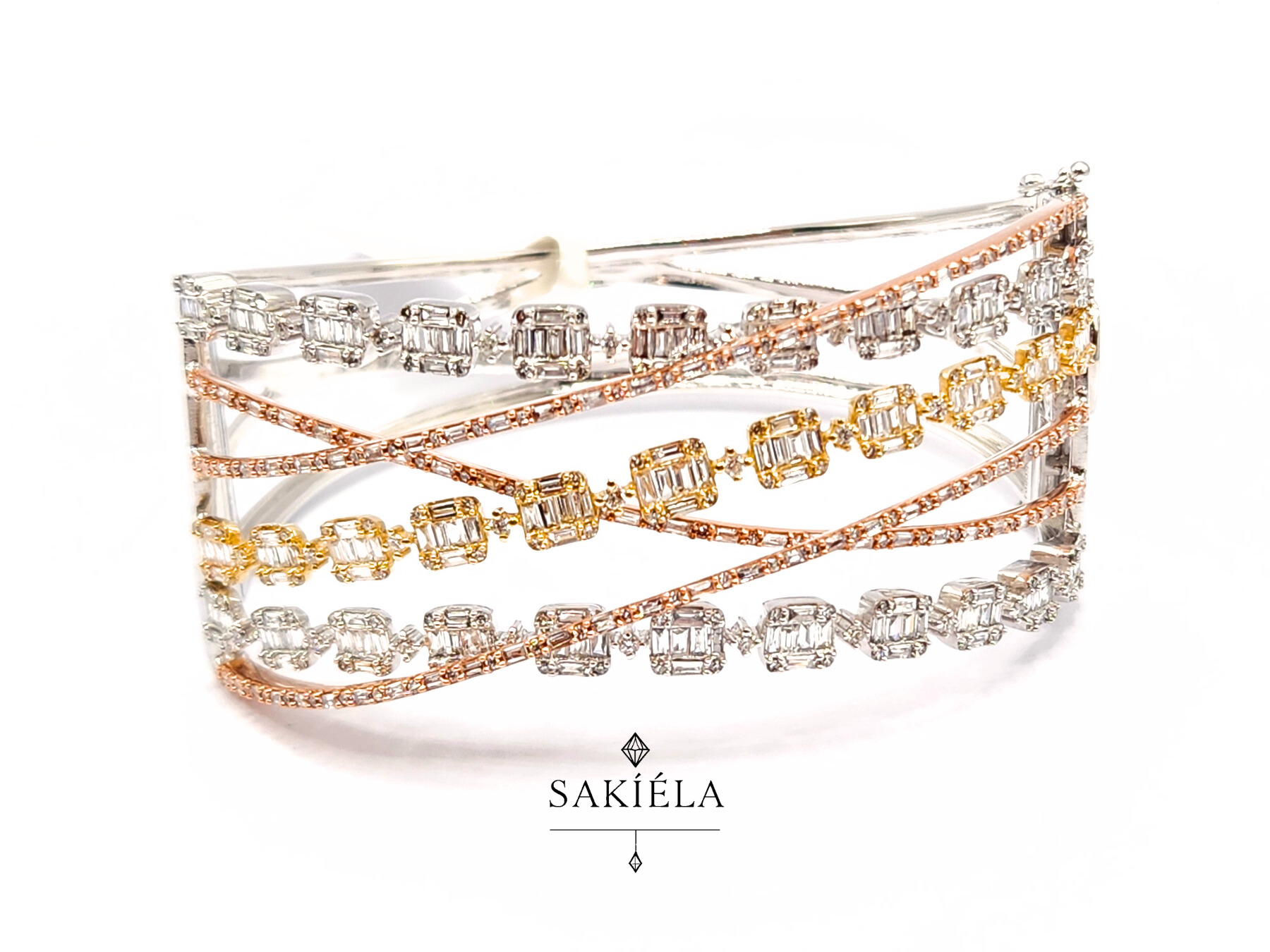 Three tones, one timeless sparkle. 🌟✔️ 4.0cts Natural Diamonds✔️ VVS1 Clarity | Color H✔️ 32.6 grams | Size 16.5cm✔️ 14 Karat Gold Mounting