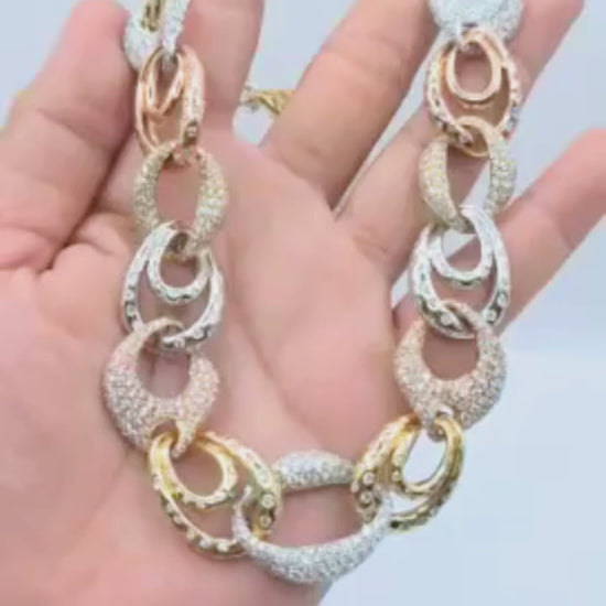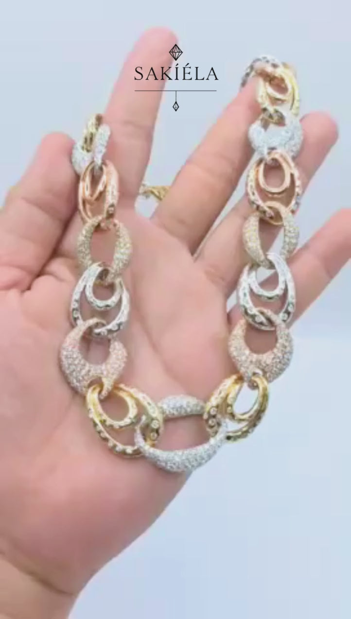 Three tones, one masterpiece — brilliance in every angle.” ✨💎🌟✔️ 18cts Natural Diamonds✔️ VVS1 Clarity | H Color✔️ 85.9 grams | 16" Length✔️ 18k Gold Mounting