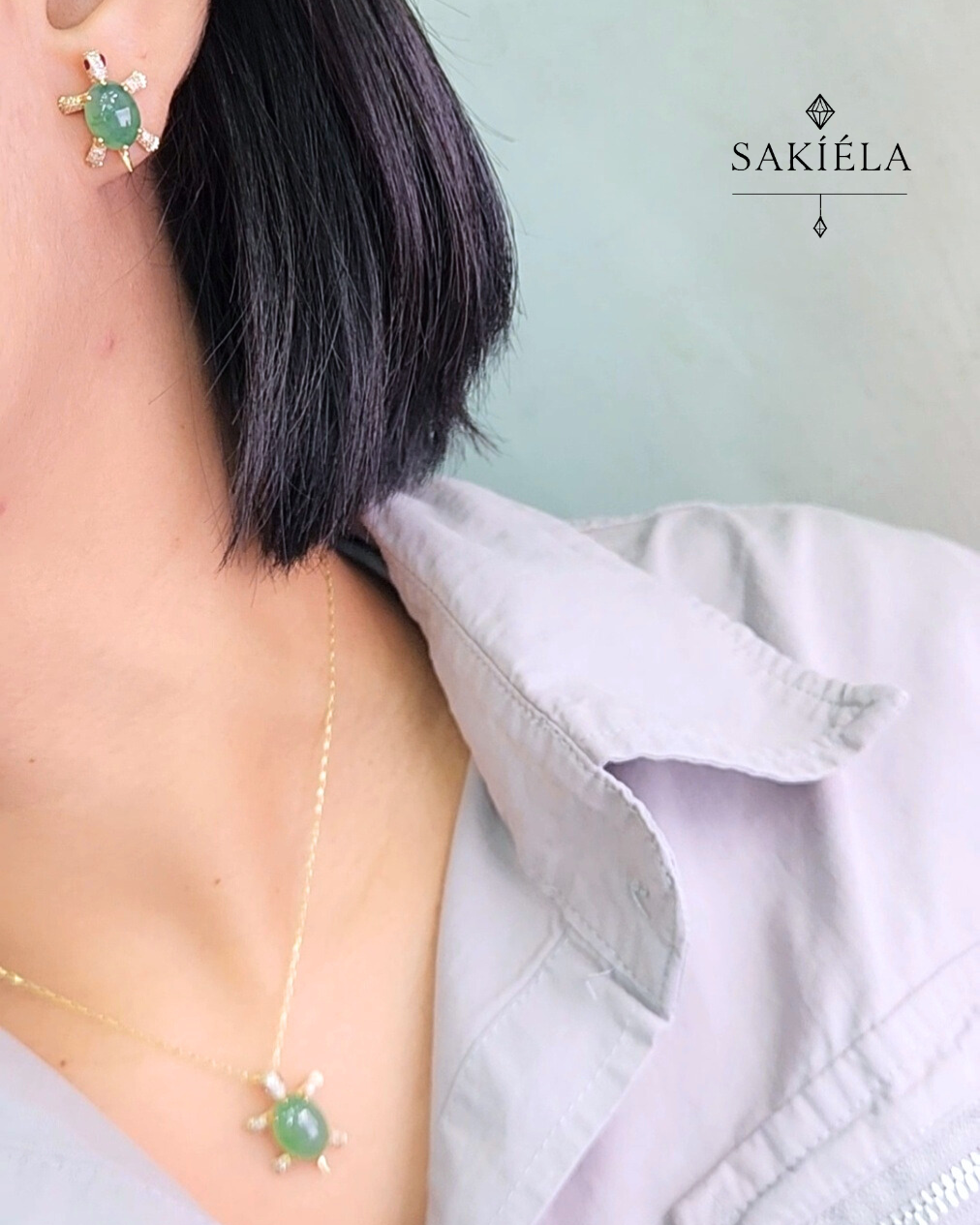 Unleash nature’s elegance with the Turtle Jade Set. 🐢✨✔️ 0.362cts Natural Diamonds | 12.11cts Jade✔️ VVS1 Clarity | Color H✔️ 8.55 grams | Length 17″ adjustable✔️ 14 Karat Yellow Gold Mounting