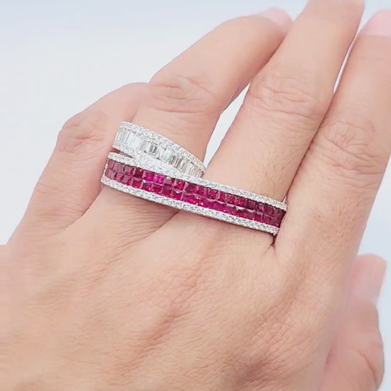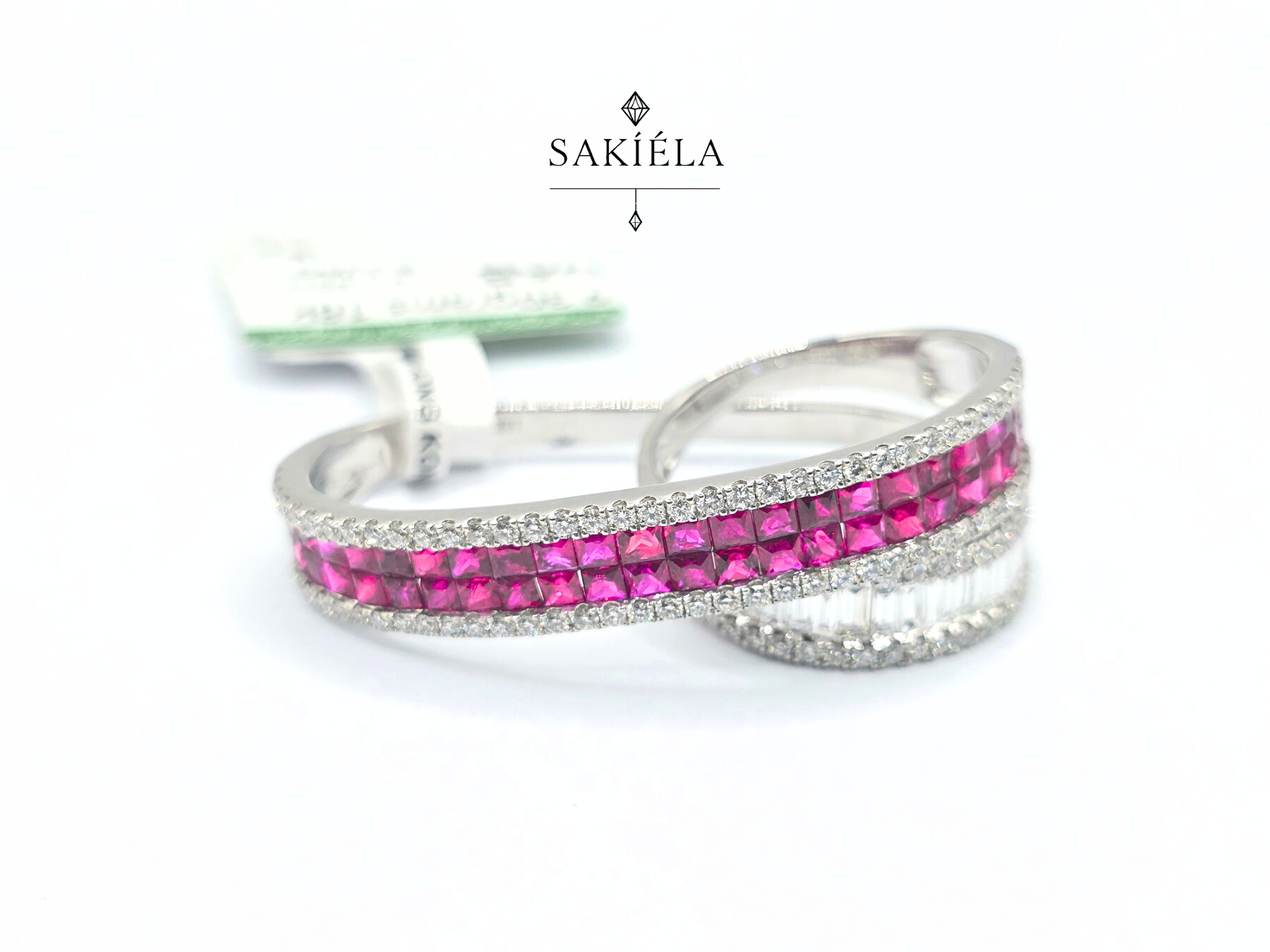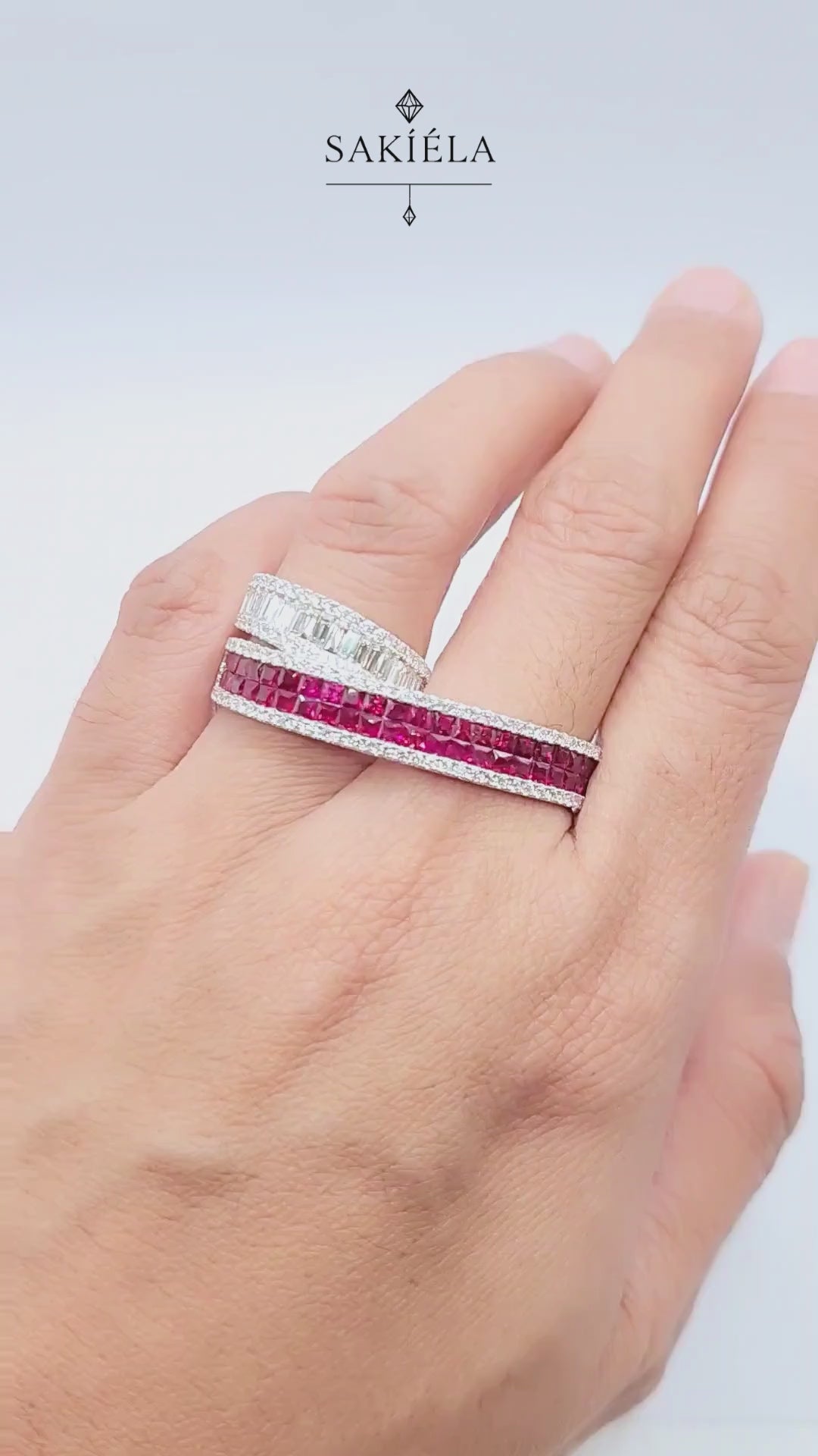 Fiery red meets flawless white. ❤️✨✔️ 1.85cts Natural Diamonds | 3.24cts Ruby✔️ VVS1 Clarity | F Color✔️ 9.3 grams✔️ 18k White Gold Mounting✔️ Ring Size: 7, 7½