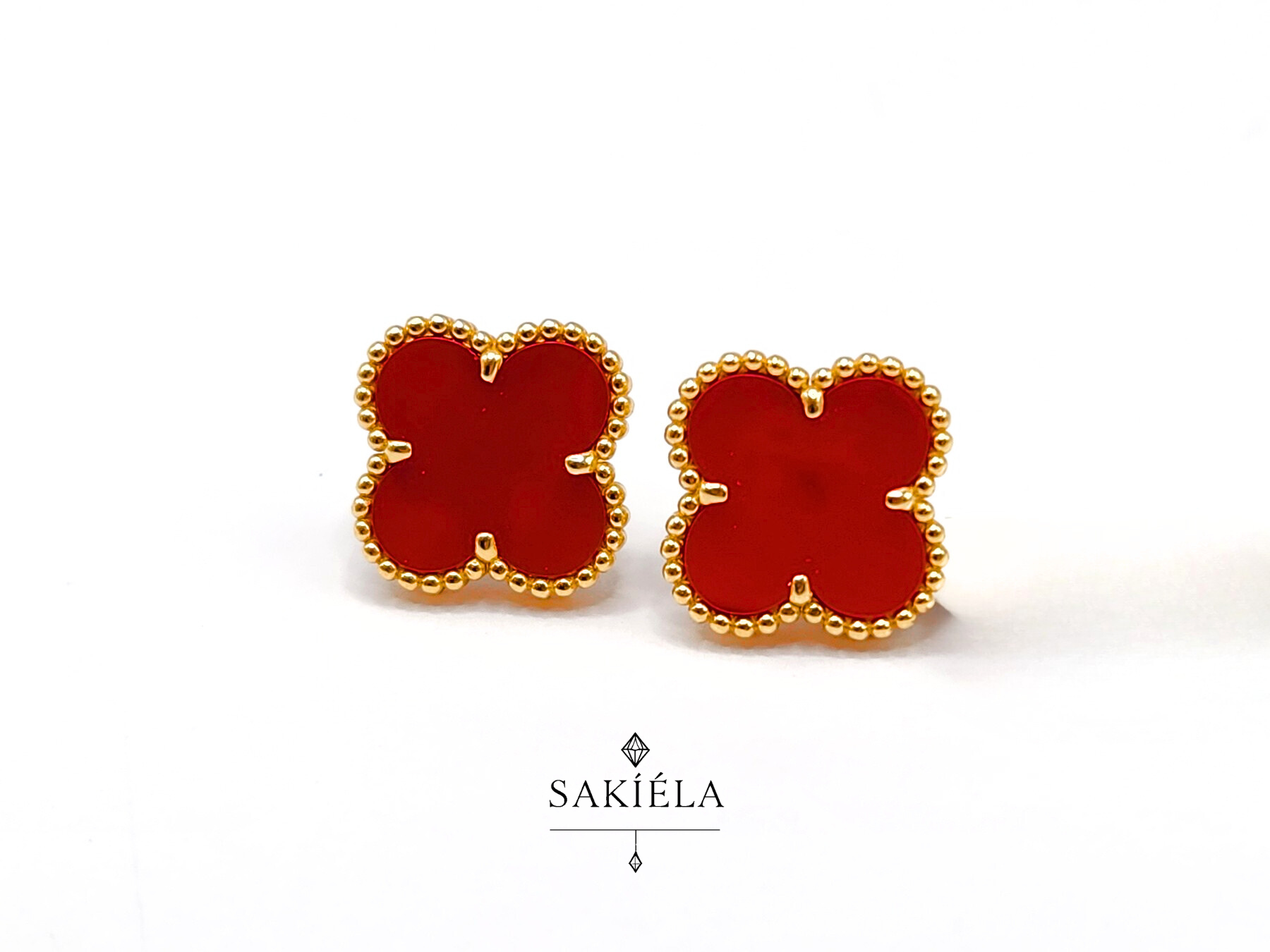 Add a pop of color with the 𝑽𝑪𝑨 Alhambra 1 Motif Carnelian Earrings. ✨✔️ 5.6 grams✔️ 18 Karat Yellow Gold Mounting